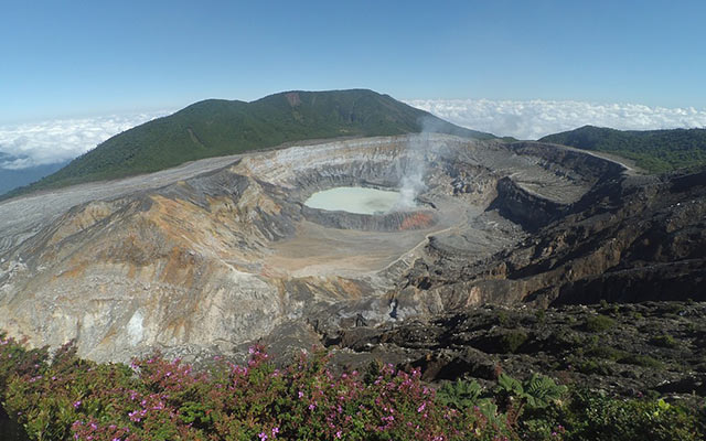 Rund um San José gibt es verschieden aktive und erloschene Vulkane. Der Poas ist mit einem Durchmesser von ca. 1.5 km und einer Tiefe von ca. 300 m der zweitgrösste Vulkankrater der Welt. Schauen Sie vom Kraterrand in den hellblauen Kratersee aus dem noch Schwefeldämpfe aufsteigen. Mit seinen 3432 m ist der Irazu der höchste Vulkan Costa Ricas. Bei gutem Wetter sehen Sie von hier aus sowohl den Pazifik wie auch den Atlantik. Faszinierend bei der Fahrt auf diese Vulkane ist auch der Wechsel der verschiedenen Vegetationszonen, da wir ja z. B. beim Irazu von San José aus eine Höhendifferenz von über 2000m überwinden. Auf kleinem Raum finden sich in Costa Rica alle Vegetationszonen vom tropischen Regenwald über Nebelwald bis zu Paramo (alpinen Hochlandsteppen).